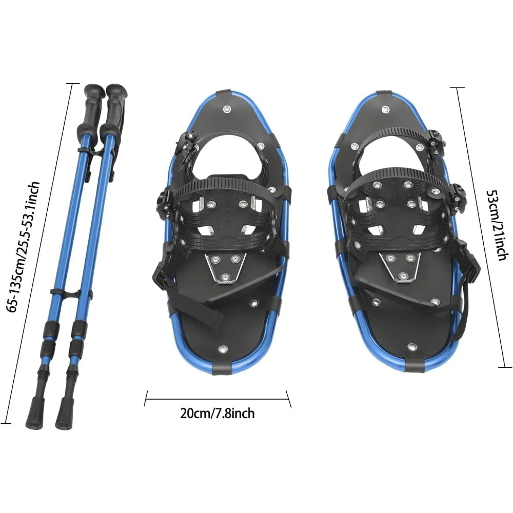21INCH Snowshoes with Adjuatable Trekking Poles Bundle Carry Bag Light Weight Aluminum Walking Hiking Poles Durable All Terrain