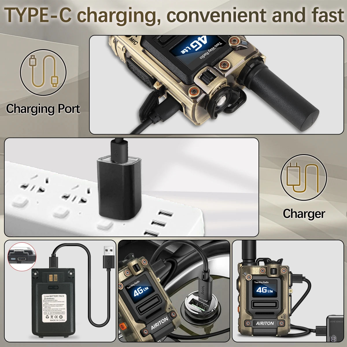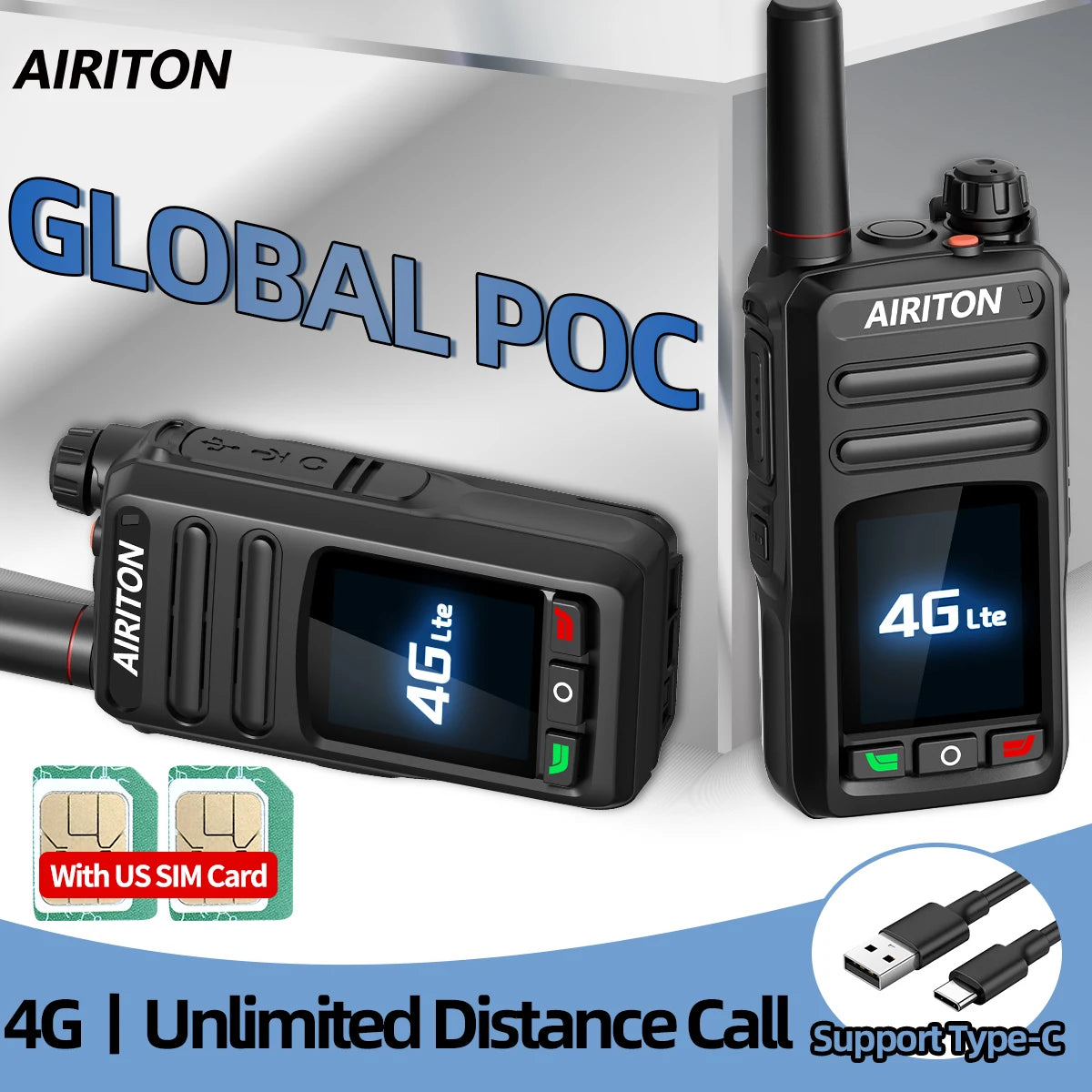 2PCS Global Network POC Radio Walkie Talkie 4G WiFi Unlimited Range Type C Long Range SIM Card Two Way Radio for Hunting Camping