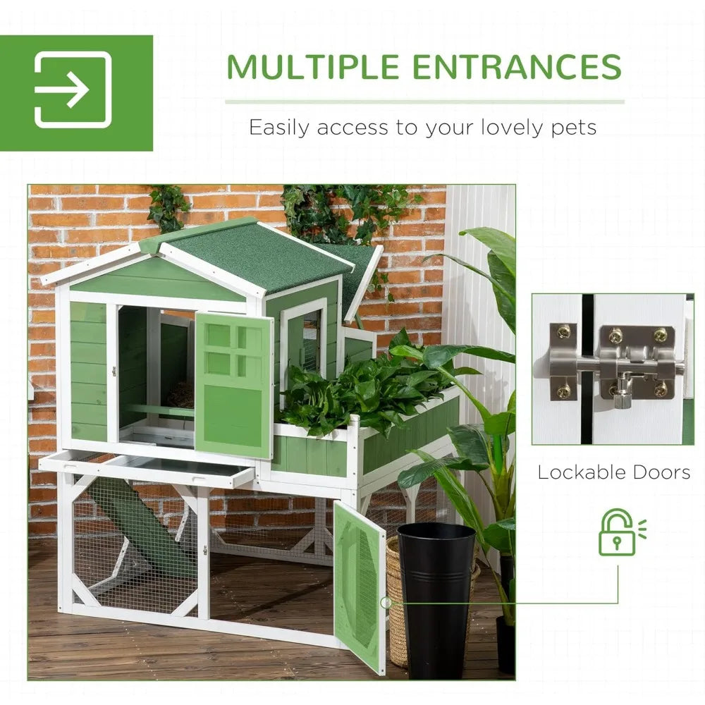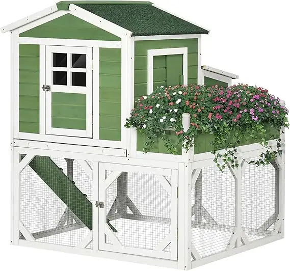 - Full Coverage: In case of rainstorms, this double-decker design is fully covered, keeping your chickens dry at all times. The shade can help protect against overheating. Coverage makes for a more comfortable shelter so that you have happy birds.