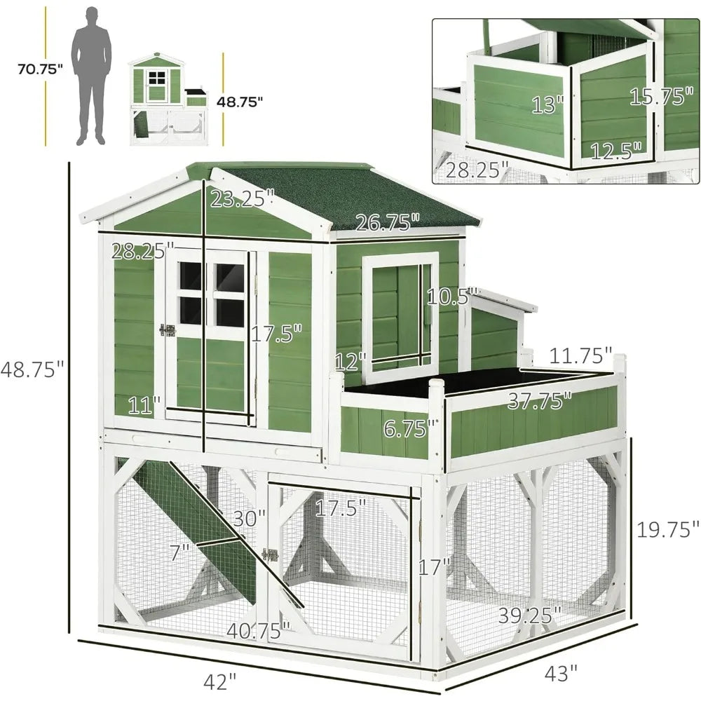 - Chicken Coop with Run: Overall Dimensions: 42" L x 43" W x 48.75" H. Living House Dimensions: 28.25" L x 26.75" W x 23.25" H. Assembly Required.