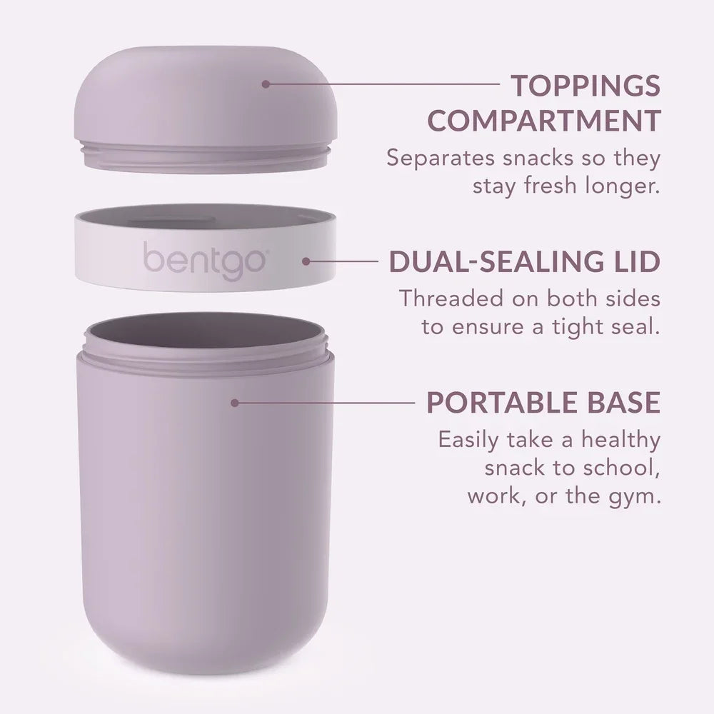 2 SEPARATE COMPARTMENTS: Featuring a 16-oz base cup and a 4-oz toppings compartment, this portable snack cup lets you pack separate items and mix them later when you're ready to enjoy