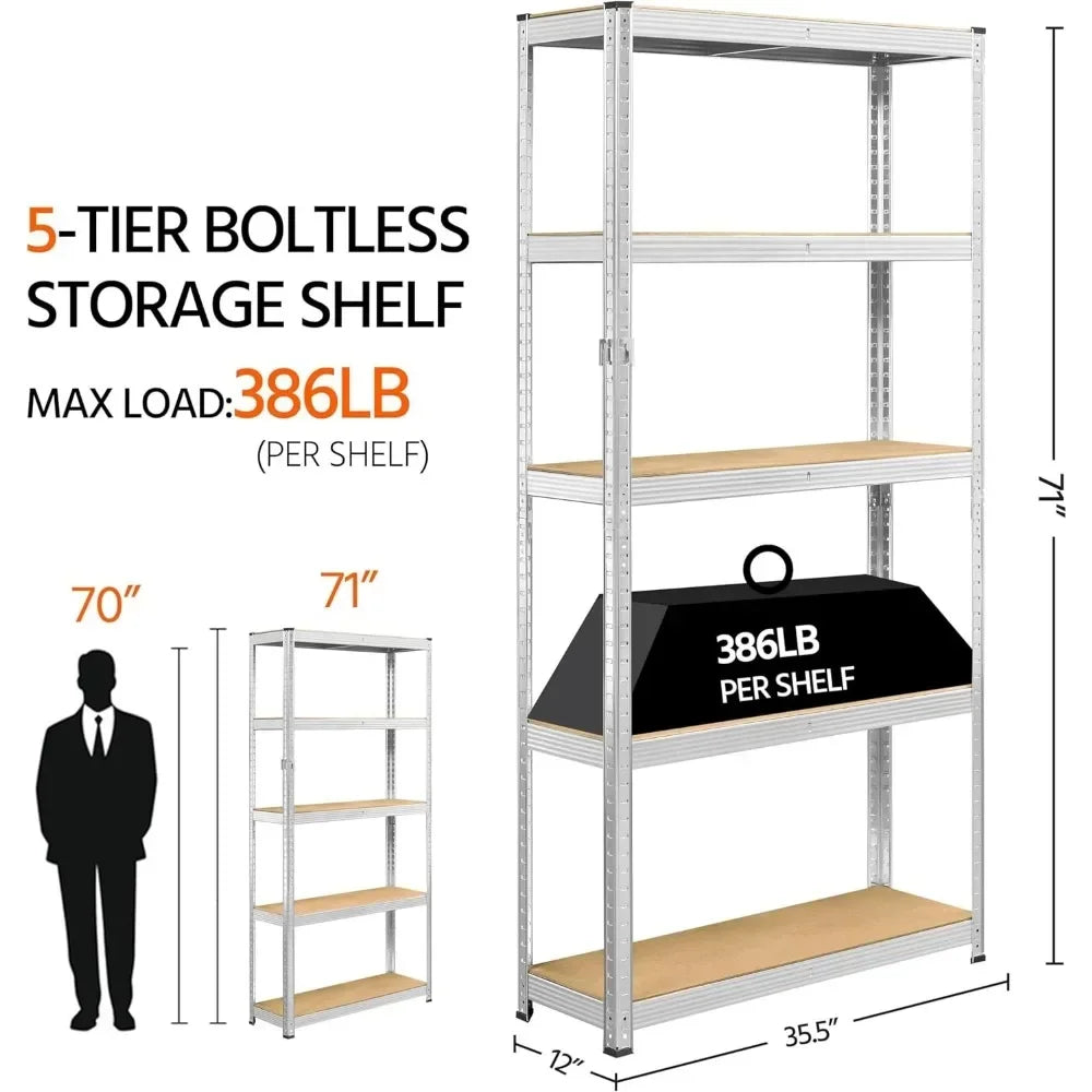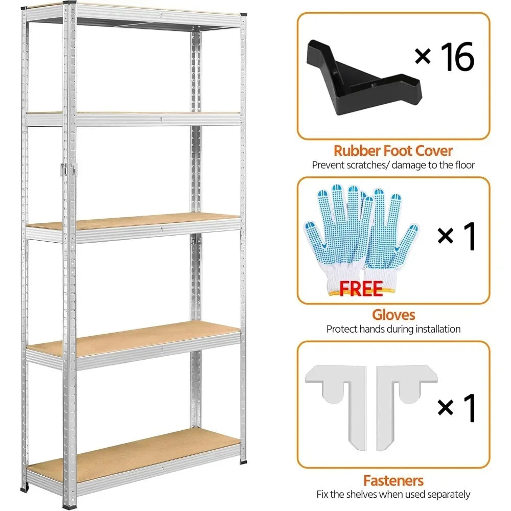 Metal Shelving Unit 5 Tier Storage Shelves Garage Shelving Heavy Duty Utility Rack for Warehouse Garage Pantry Kitchen