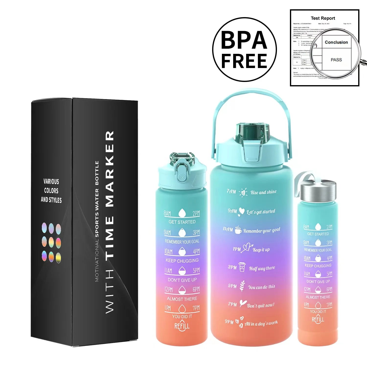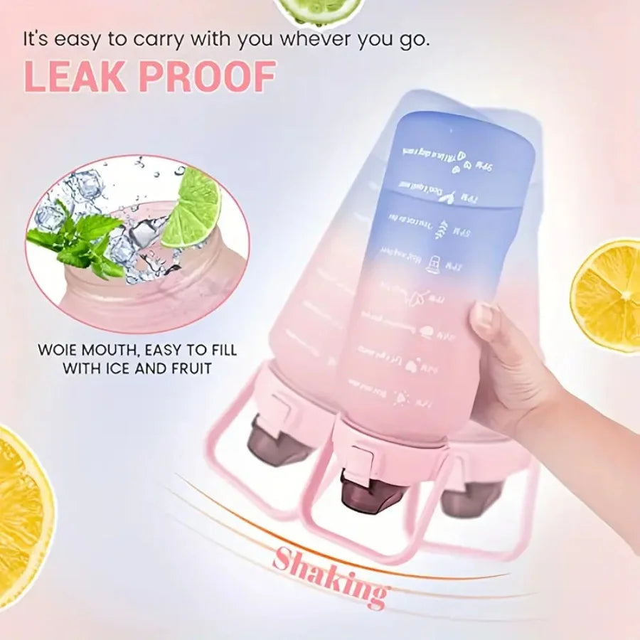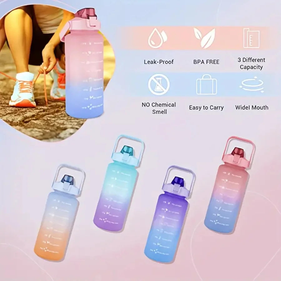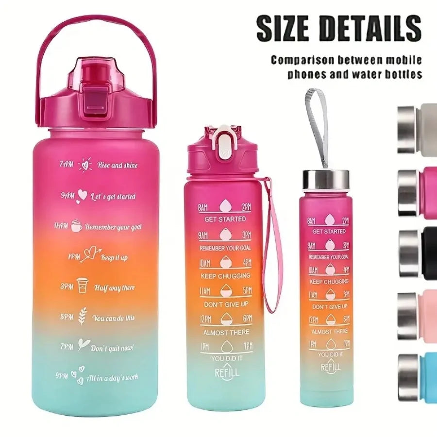 Multi-Color 3-Piece Water Bottle Set, Leak Proof Gradient Sports Bottle, Portable PC Drink Container With Time Stamp And Straw F