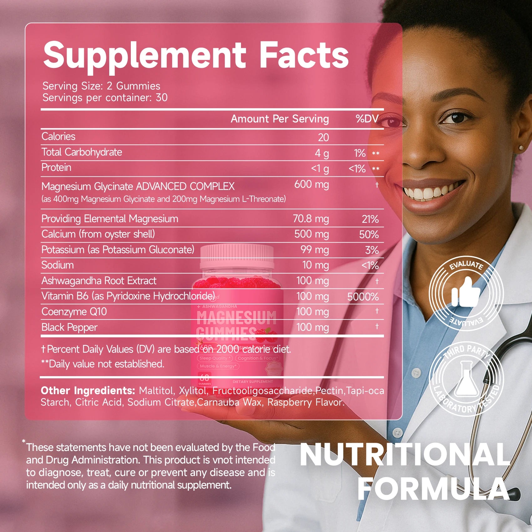 Quitmood Magnesium Glycinate Advanced Complex Gummies - With Ashwagandha, Magnesium, Calcium, VB6, CQ10 for Calm Support & Sleep