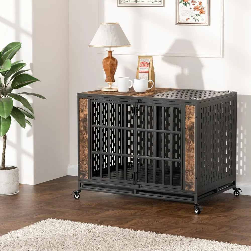 Sturdy 42-inch Dog Crate for Large and Medium Breeds, Secure and Durable Kennel for Anxious Dogs, Rustic Brown Indoor Pet Cage