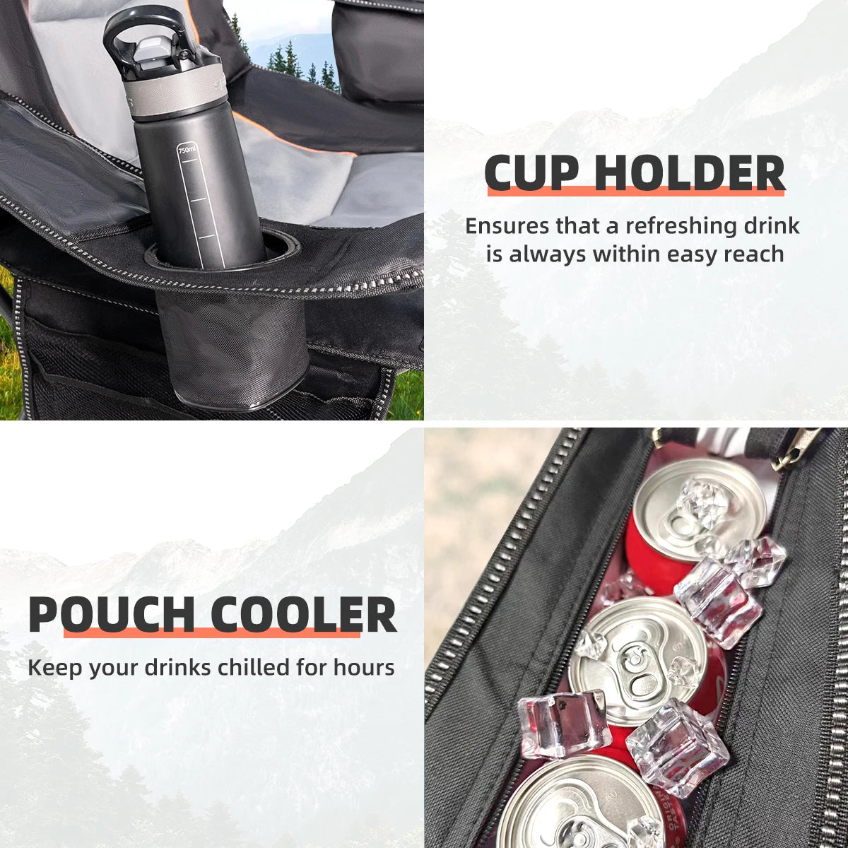 This versatile chair features a built-in cooler, making it easy to keep your drinks chilled while you enjoy the great outdoors. The padded seat and backrest offer unmatched comfort, allowing you to unwind and enjoy your surroundings without the discomfort of ordinary camping chairs.