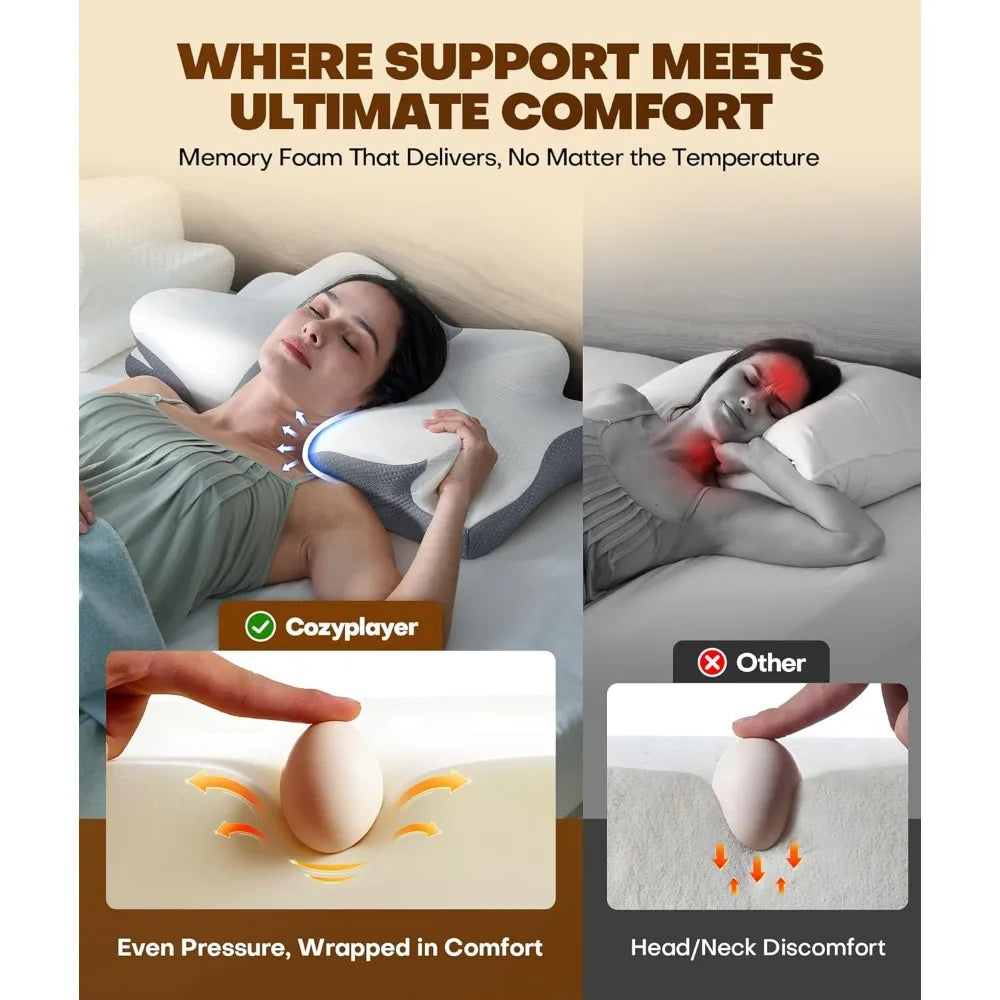 - HASSLE-FREE SERVICE, GUARANTEED EASE - Since we spend so much of our lives asleep, picking the ideal pillow is key. COZYPLAYER's pain-free pillow is the result of numerous sleep experiments, and we're proud to offer our customers a 100-night risk-free trial. Additionally, it's an excellent gift for parents and friends, and long-term use will significantly improve sleep quality. We promise top-quality products and customer service. If you have any questions, we'll provide answers within 24 hours.