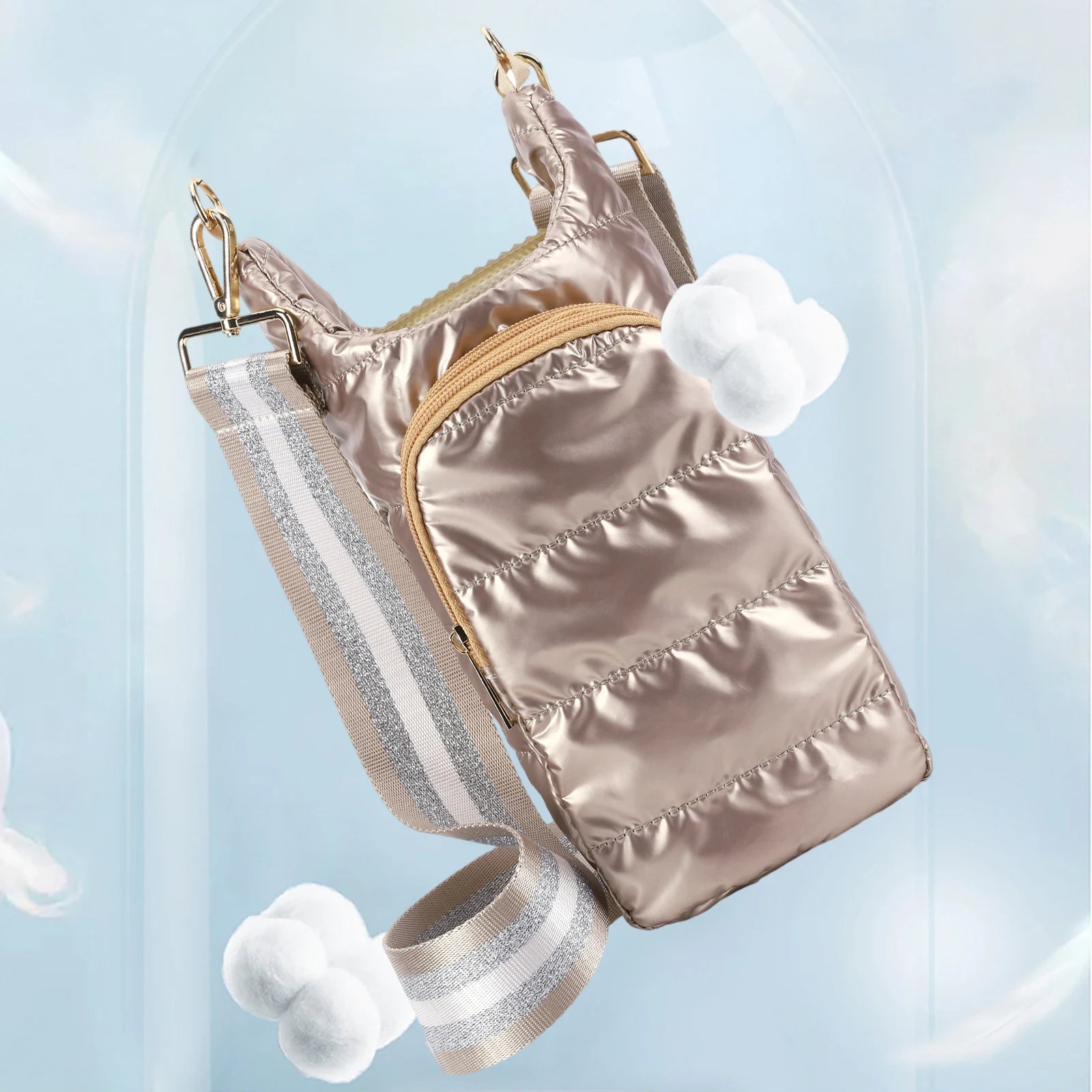 Water Bottle Carrier Adjustable Wide Strap Water Bottle Puffer Tote Portable Water Bottle Sling Bag Soft for Outdoor Travel Features: