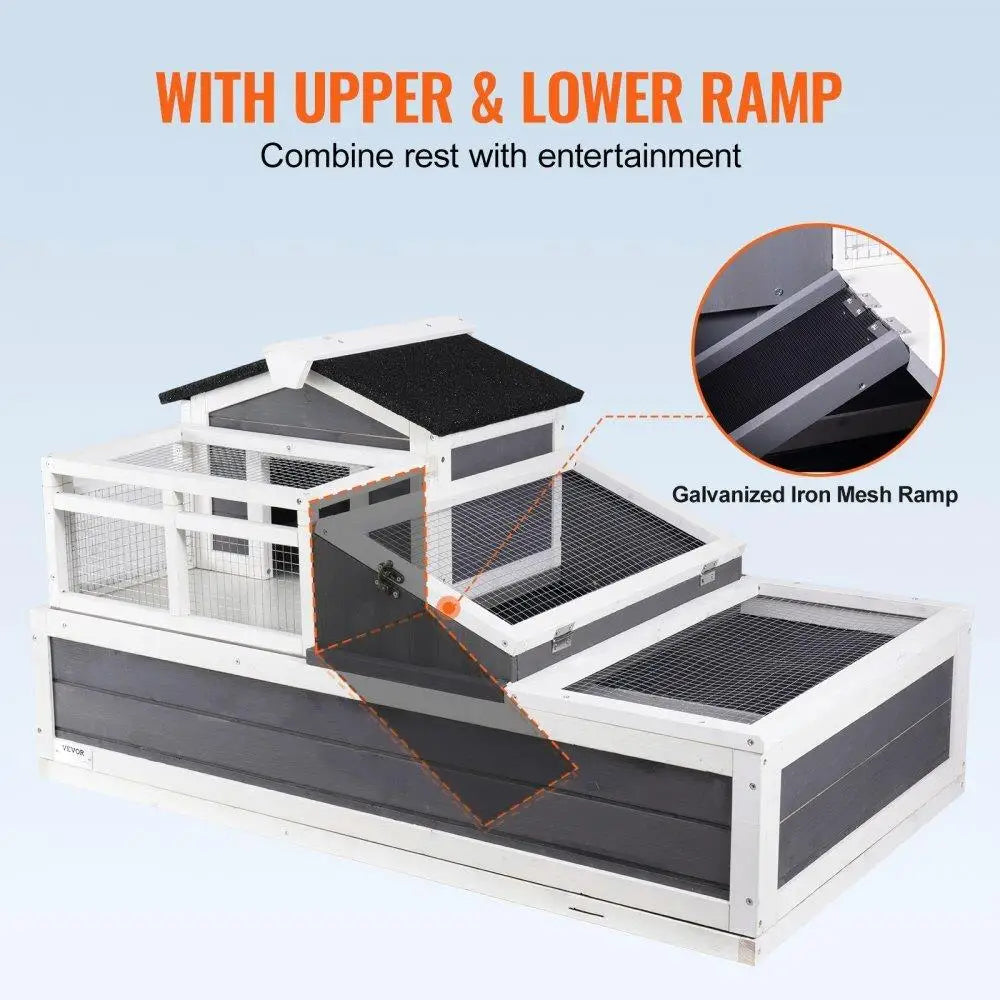 Tortoise Habitat Wooden Tortoise House Indoor/Outdoor 3-Room 44x25.6x24in